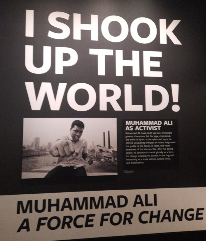 Muhammad Ali as activist. One of my favourite posters at the Smithsonian African American Museum. Ali was an activist. One of boxings greatest champions. But his legacy transcends the world of sport. After his boxing career, Ali continued to work globally as a force for change, eclipsing his success in the ring and triumphing as a social activist, cultural critic and humanitarian.